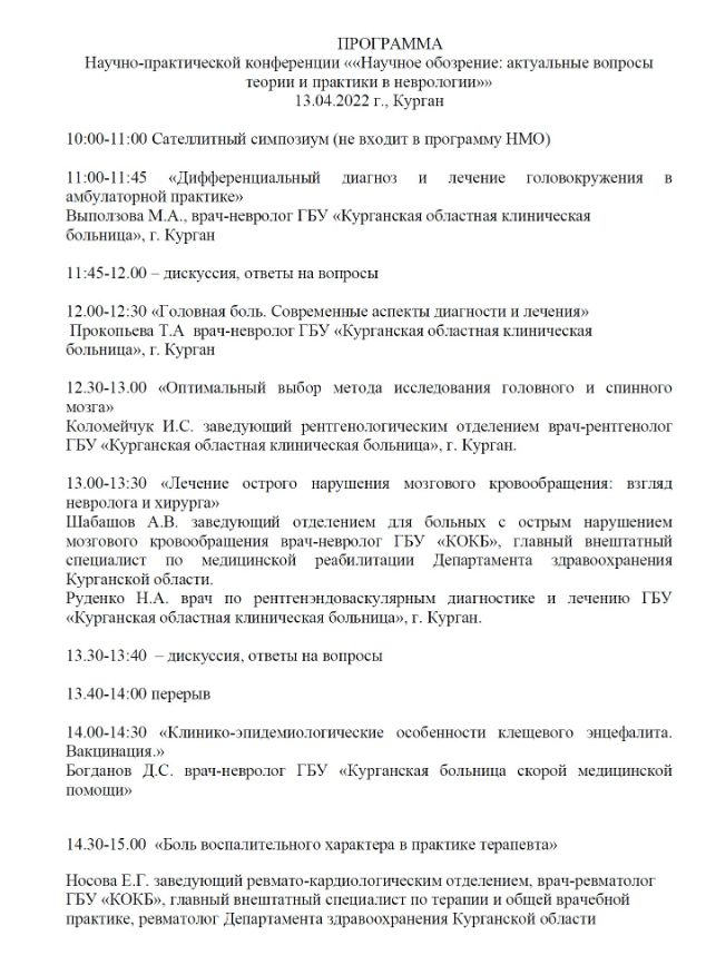 Место проведения: г. Курган, ул. Томина д. 63, ГБУ «Курганская областная клиническая больница»