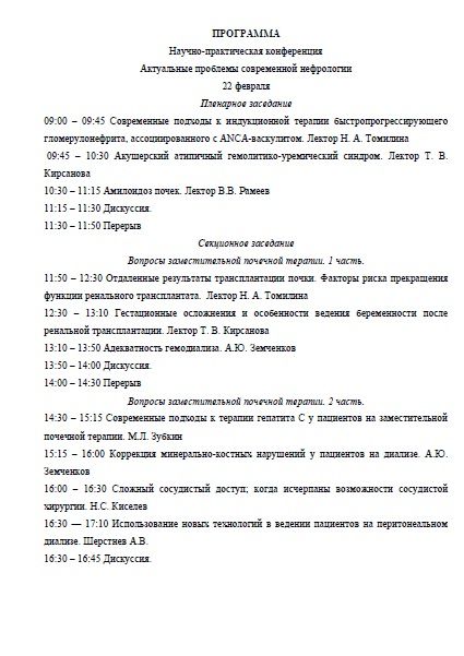 Научно-практическая конференция нефрологов «Актуальные проблемы современной нефрологии» |