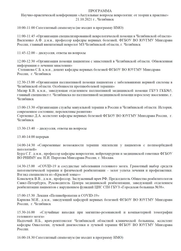 Научно-практическая конференция «Актуальные вопросы неврологии: от теории к практике» для неврологов, терапевтов, врачей общей практики Челябинска и Челябинской области |