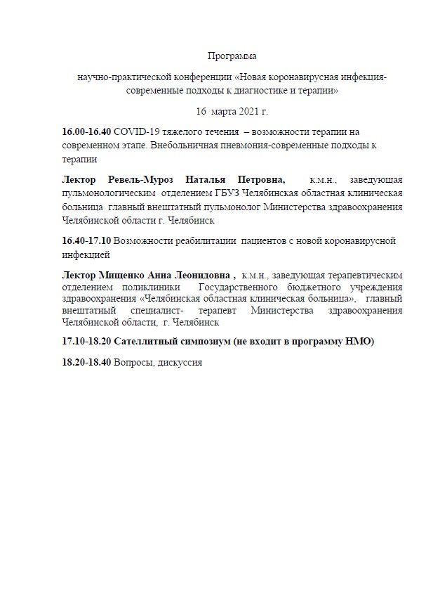 Научно-практическая конференция «Новая коронавирусная инфекция-современные подходы к диагностике и терапии» |