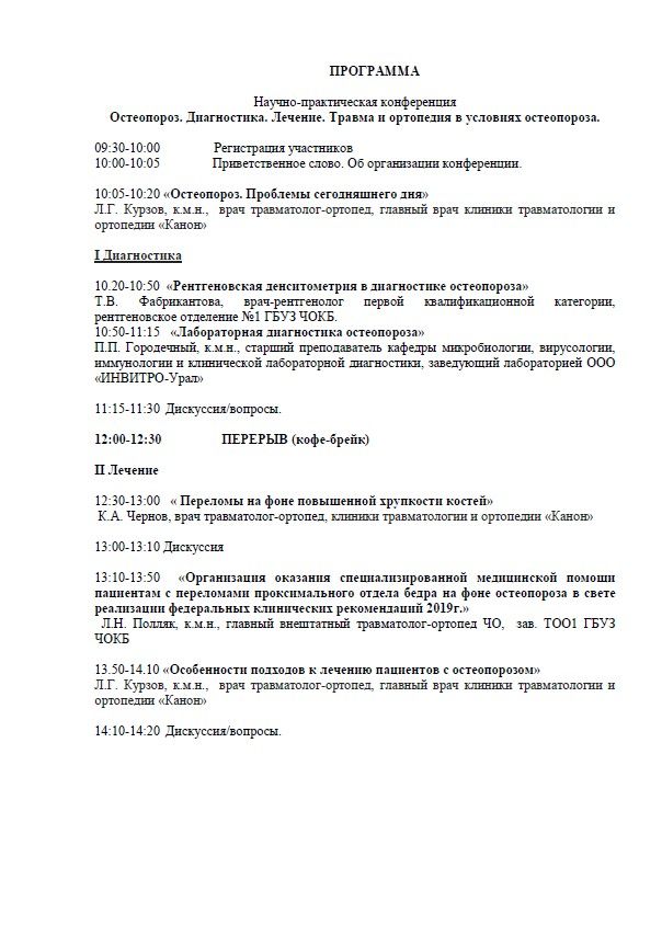 Научно-практическая конференция Остеопороз. Диагностика. Лечение. Травма и ортопедия в условиях остеопороза. Дата проведения: 12.10.19 г. Место проведения: г. Челябинск, ул.Труда 153, конгресс-отель «Малахит» Сателлитный симпозиум (не входит в программу для НМО)
