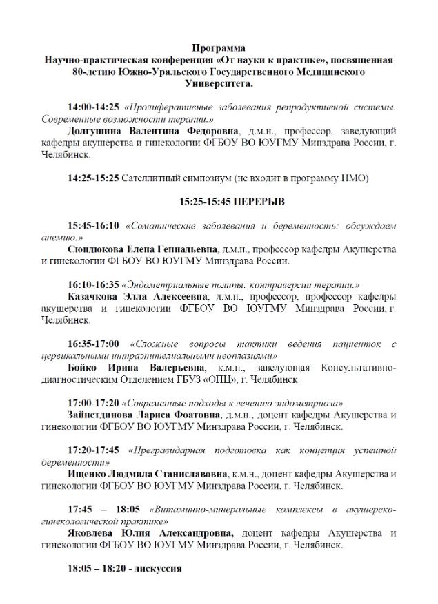 Научно-практическая конференция «От науки к практике», посвященная 80-летию Южно-Уральского Государственного Медицинского Университета |