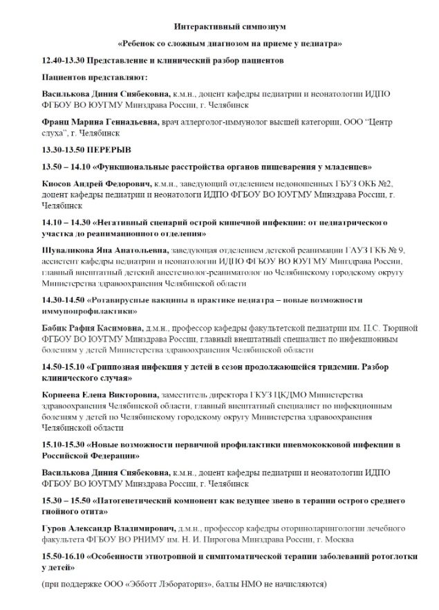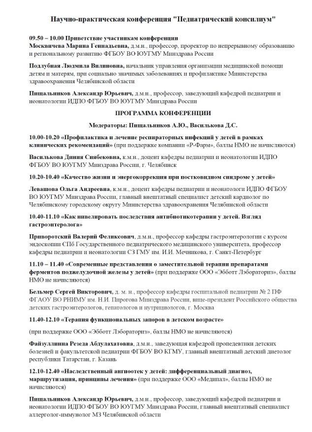 Научно-практическая конференция «Педиатрический консилиум» Дата проведения: 16 ноября 2023 г. Место проведения: г. Челябинск, ул. Труда, 153, Отель «Малахит»