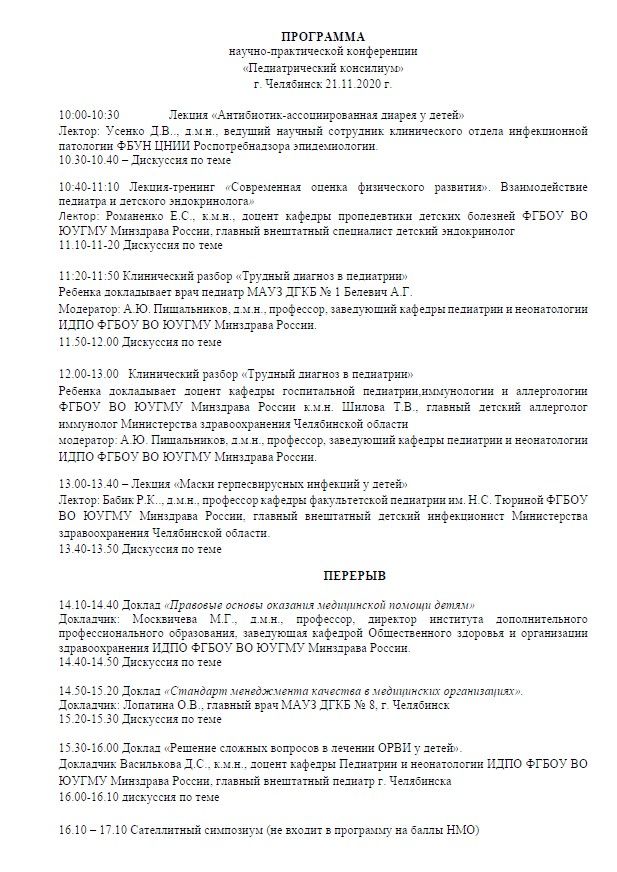 Научно-практическая конференция «Педиатрический консилиум» |