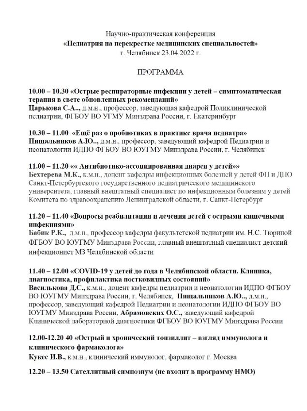 Научно-практическая конференция "Педиатрия на перекрестке медицинских специальностей" |