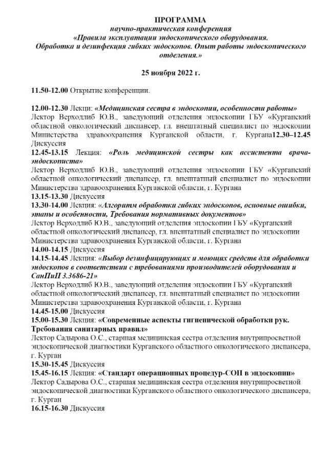 Научно-практическая конференция «Правила эксплуатации эндоскопического оборудования. Обработка и дезинфекция гибких эндоскопов. Опыт работы эндоскопического отделения» |
