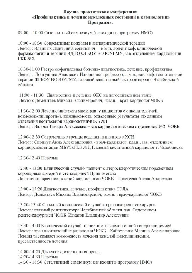 Научно-практическая конференция «Профилактика и лечение неотложных состояний в кардиологии» |
