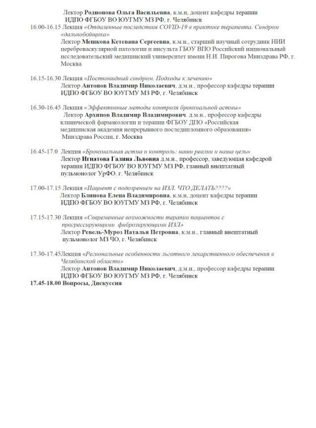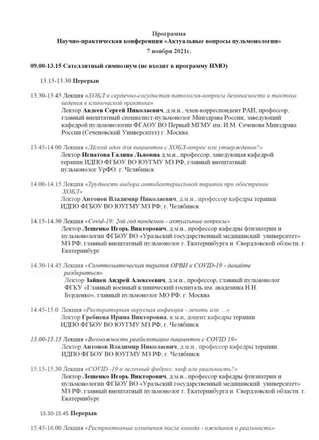 Научно-практическая конференция «Актуальные вопросы пульмонологии» |