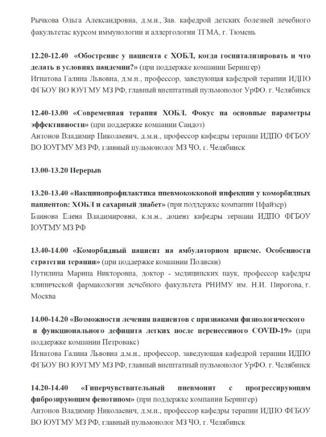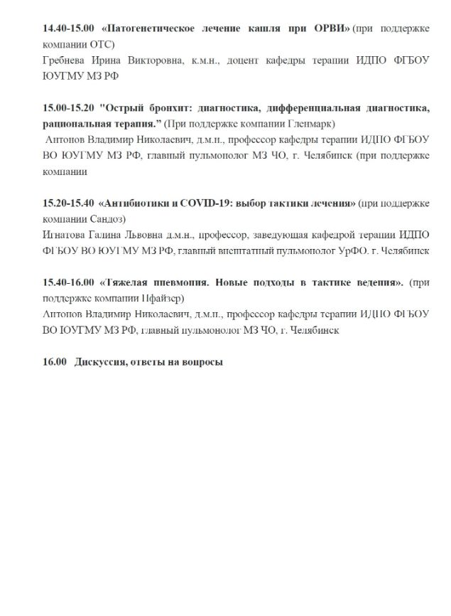 Областная научно-практическая конференция «Респираторные беседы» Дата проведения: 4 марта 2022 года. Ссылка для регистрации: https://events.webinar.ru/20107333/10168477 Техническое сопровождение: +79048121762