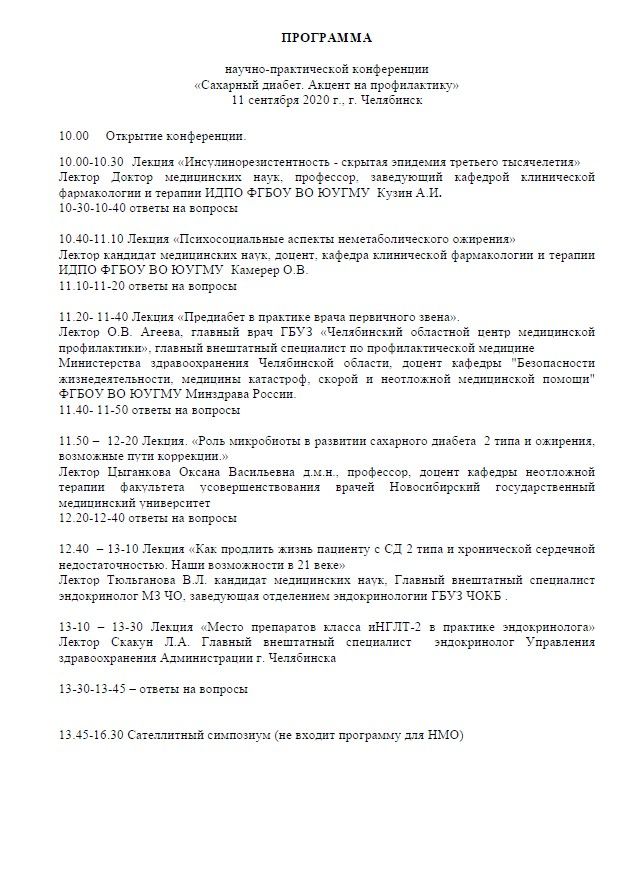 Научно-практическая конференция «Сахарный диабет. Акцент на профилактику» |