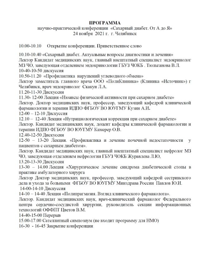 Научно-практическая конференция «Сахарный диабет. От А до Я» |