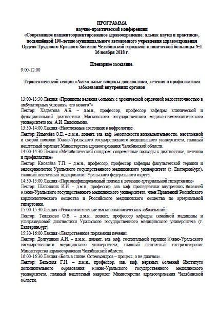 Научно-практическая конференция «Современное пациентоориентированное здравоохранение: альянс науки и практики», посвящённой 190-летию МАУЗ Ордена Трудового Красного Знамени Челябинской городской клинической больницы №1 |