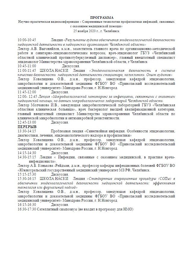 Научно-практическая видеоконференция «Современные технологии профилактики инфекций. связанных с оказанием медицинской помощи» |