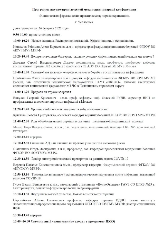 Научно-практическая междисциплинарная конференция «Клиническая фармакология практическому здравоохранению» |