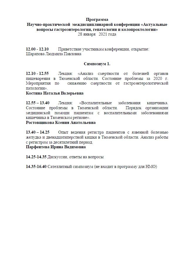 Научно-практическая междисциплинарная конференция «Актуальные вопросы гастроэнтерологии, гепатологии и колопроктологии» |