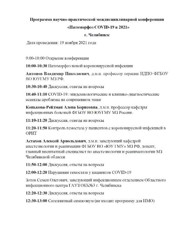 Научно-практическая междисциплинарная конференция «Патоморфоз COVID-19 в 2021» |
