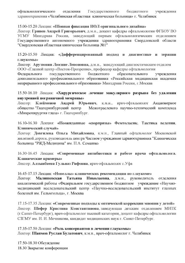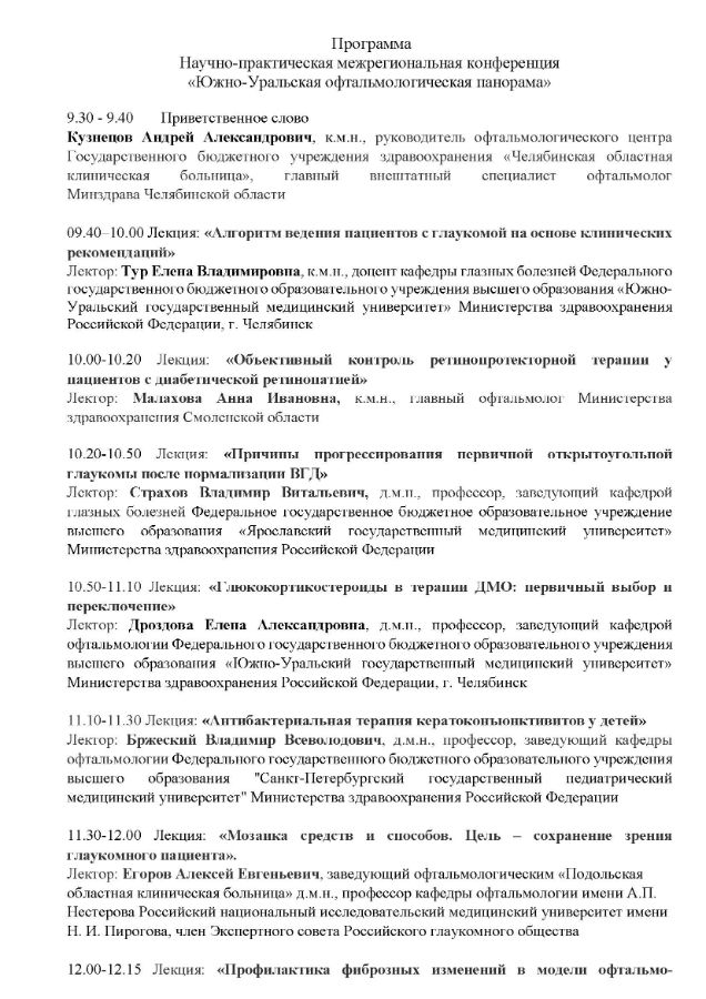 Научно-практическая межрегиональная конференция «Южно-Уральская офтальмологическая панорама» Дата проведения: 29 ноября 2024 г. Мемсто проведения: г. Челябинск, ул. Труда, 179, Отель Radisson Blu Hotel