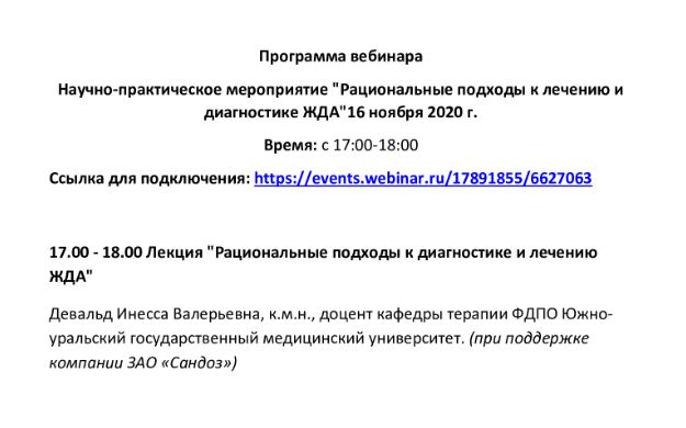 Научно-практического мероприятие «Рациональные подходы к диагностике и лечению ЖДА» |