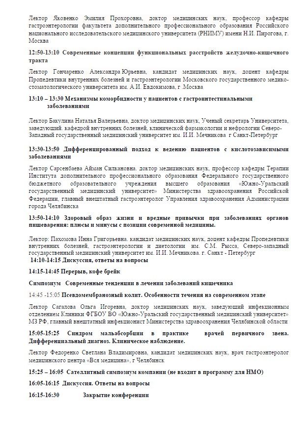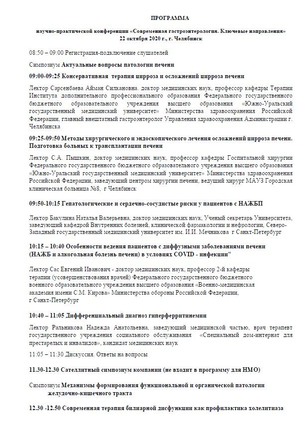 Научно-практической конференции «Современная гастроэнтерология. Ключевые направления» |
