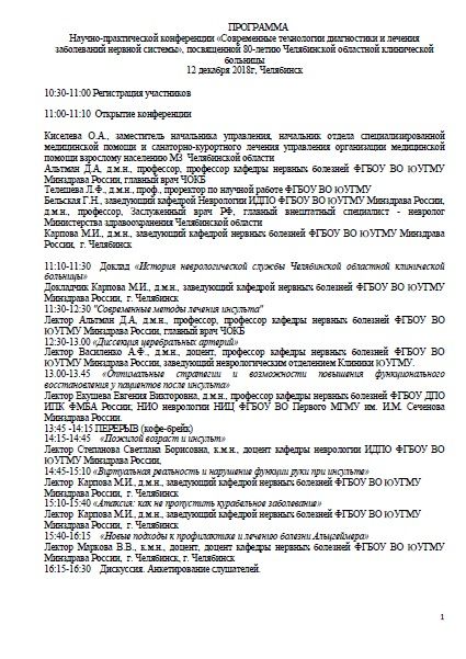 Научно-практической конференции «Современные технологии диагностики и лечения заболеваний нервной системы», посвященной 80-летию Челябинской областной клинической больницы |