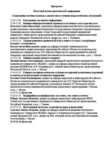 Областная научно-практическая конференция «Современные научные подходы к диагностике и лечению неврологических заболеваний» |