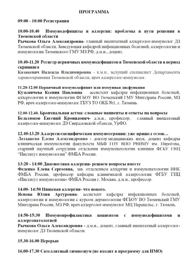 Областная конференция аллергологов-иммунологов Тюменской области «Аллергология, иммунология: школа практического врача» Дата проведения: 8 апреля 2023 г. Место проведения: г. Тюмень, улица Советская, дом 20, Бизнес отель Евразия Сателлитный симпозиум (не входит в программу для НМО)