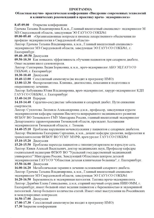 Областная научно-практическая конференция «Внедрение современных технологий и клинических рекомендаций в практику врача- эндокринолога» |