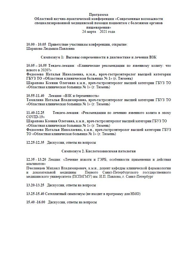 Областная научно-практическая конференции «Современные возможности специализированной медицинской помощи пациентам с болезнями органов пищеварения» |