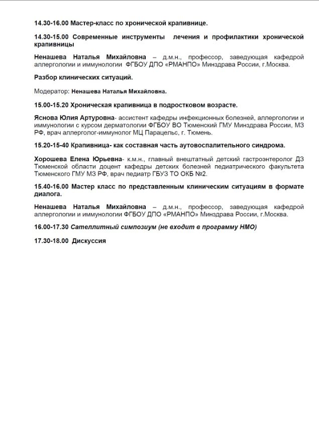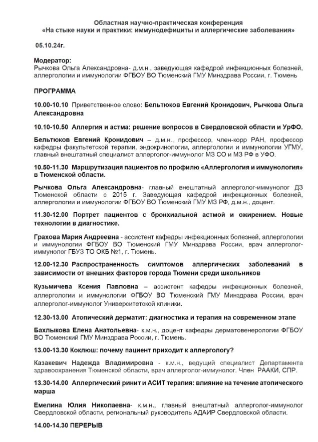 Областная научно-практическая конференция «На стыке науки и практики: иммунодефициты и аллергические заболевания» Дата проведения: 05 октября 2024 г. Место проведения: г. Тюмень, ул. Советская, 20, отель Евразия Сателлитный симпозиум (не входит в программу НМО)