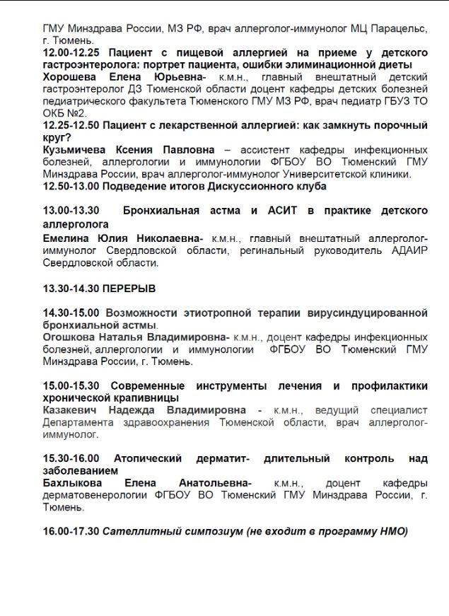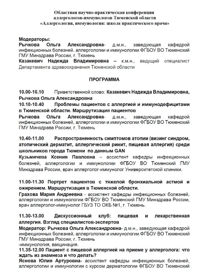 Областная научно-практическая конференция аллергологов-иммунологов Тюменской области «Аллергология, иммунология: школа практического врача» |