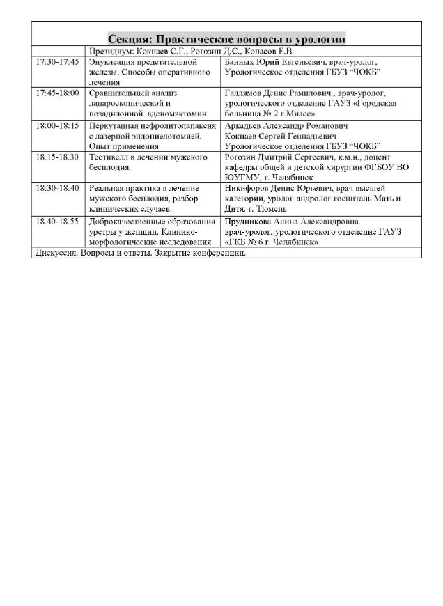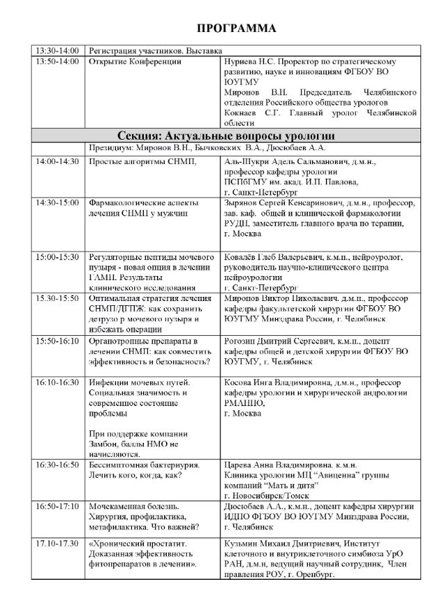 Областная научно-практическая конференция «Актуальные вопросы в урологии» Дата проведения:13 декабря 2024 г. Место проведения: г. Челябинск, ул. Лесопарковая, д. 6, отель Парк-Сити