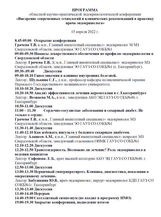 Областная научно-практическая конференция «Внедрение современных технологий и клинических рекомендаций в практику врача эндокринолога» |