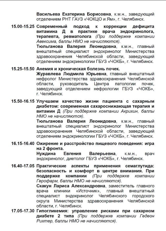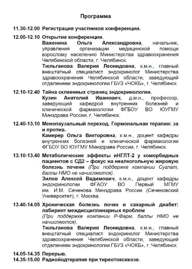 Областная научно-практическая конференция "Актуальные вопросы диагностики и лечения эндокринных заболеваний" Дата проведения: 15 мая 2024 г. Место проведения: г. Челябинск, Конгресс-отель, Малахит, ул. Труда, 153