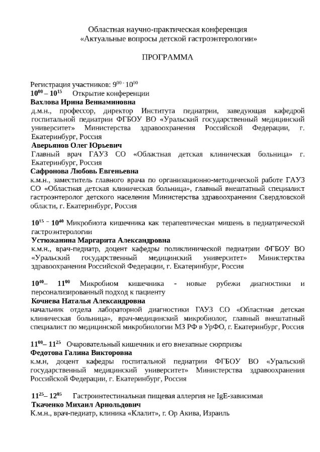 Областная научно-практическая конференция «Актуальные вопросы детской гастроэнтерологии» Дата проведения: 15 ноября 2025 г. Место проведения: г. Екатеринбург, улица Народной Воли, 83, «SLIDE Hotel»