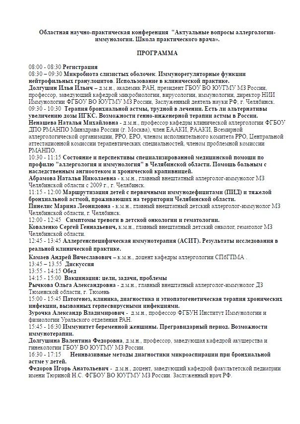 Областная научно-практическая конференция "Актуальные вопросы аллергологии-иммунологии. Школа практического врача». Дата проведения: 19 марта 2020 г. Место проведения: г. Челябинск, ул. Труда, 153, Отель Малахит Сателлитный симпозиум (не входит в программу НМО)