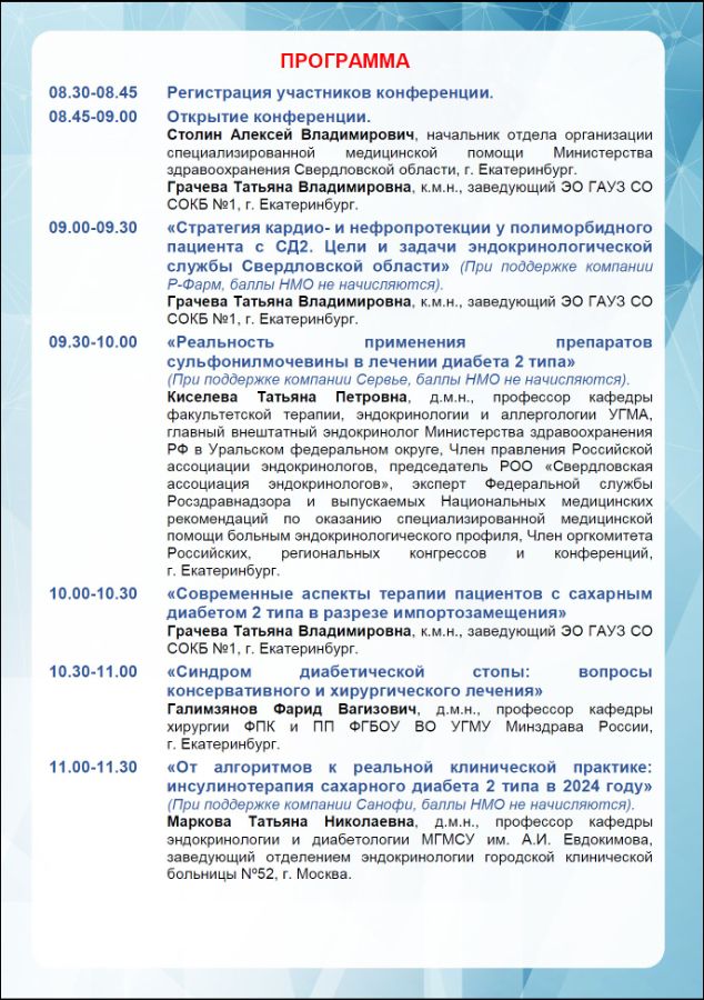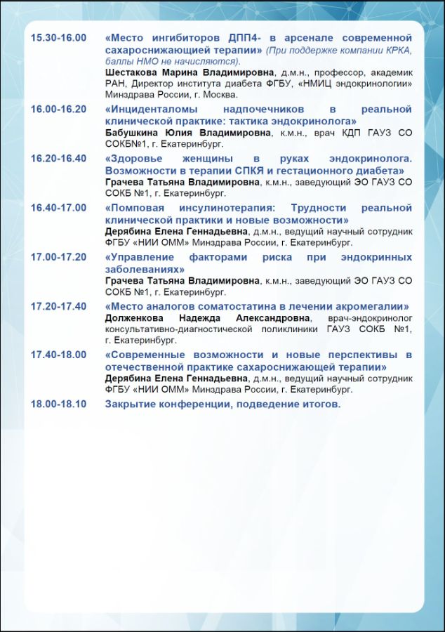 Областная научно-практическая конференция «Внедрение современных технологий и клинических рекомендаций в практику врача эндокринолога» |