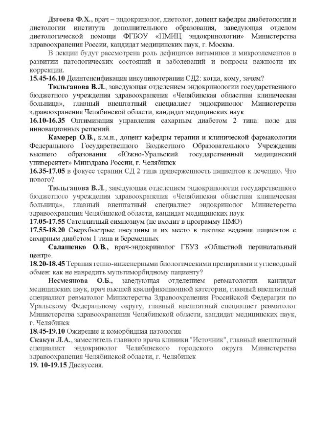 Областная научно-практическая конференция «Итоги работы эндокринологической службы Челябинской области в 2024 году» Дата проведения: 20 марта 2025 г. Место проведения: г. Челябинск, ул. Лесопарковая, 6, Отель ПаркСити Сателлитный симпозиум (не входит в программу НМО)