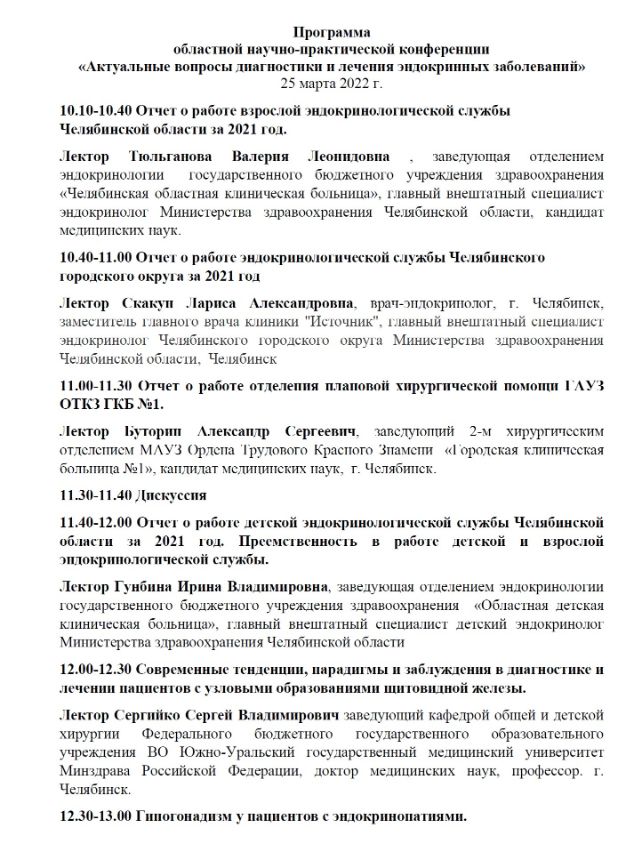 Областная научно-практическая конференция «Актуальные вопросы диагностики и лечения эндокринных заболеваний» |