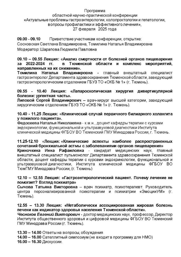 Областная научно-практическая конференция «Сочетанные заболевания в гастроэнтерологии. Инновационные подходы к диагностике и терапии болезней органов пищеварения» |