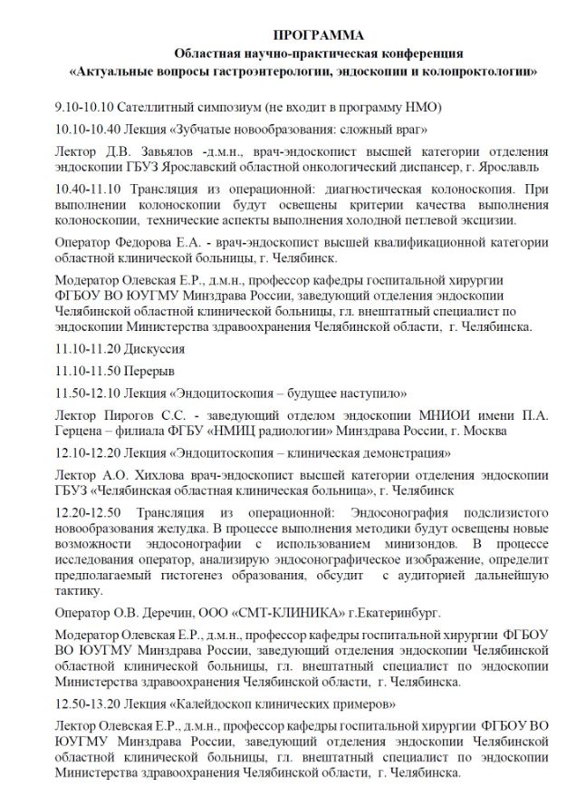 Областная научно-практическая конференция «Актуальные вопросы гастроэнтерологии, эндоскопии и колопроктологии» Дата проведения: 7 июня 2024 г. Место проведения: г. Челябинск, ул. Труда, д. 179, отель Редиссон Блю Сателлитный симпозиум (не входит в программу НМО)