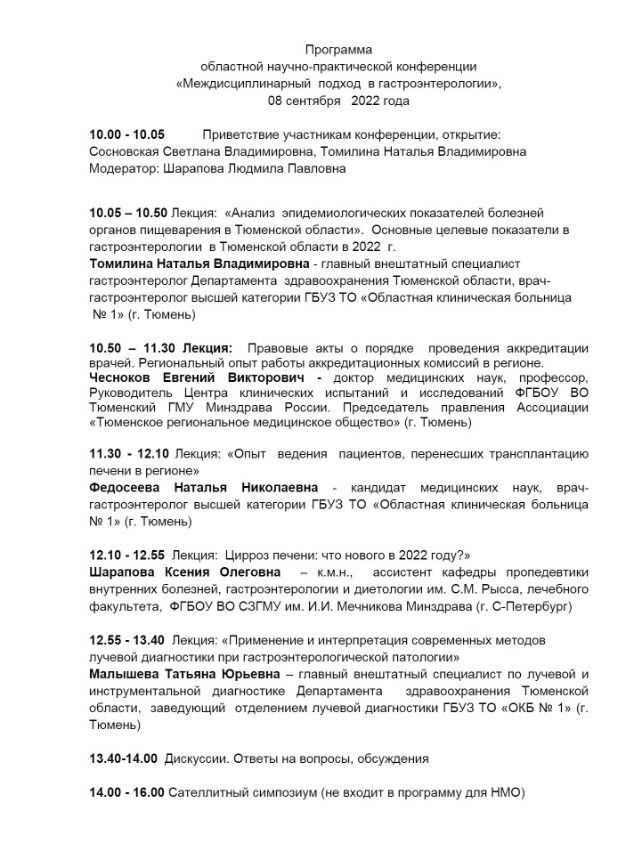 Областная научно-практическая конференция «Междисциплинарный подход в гастроэнтерологии» |