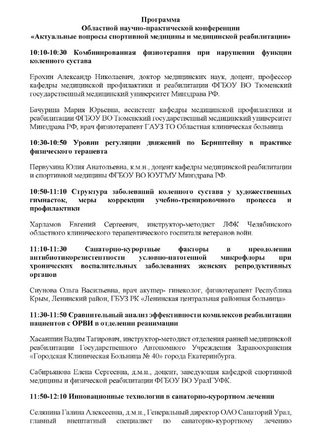Областная научно-практическая конференция «Актуальные вопросы спортивной медицины и медицинской реабилитации» Дата проведения: 9 сентября 2025 года Место проведения: г. Челябинск, ул. Лесопарковая, 6, отель Парксити