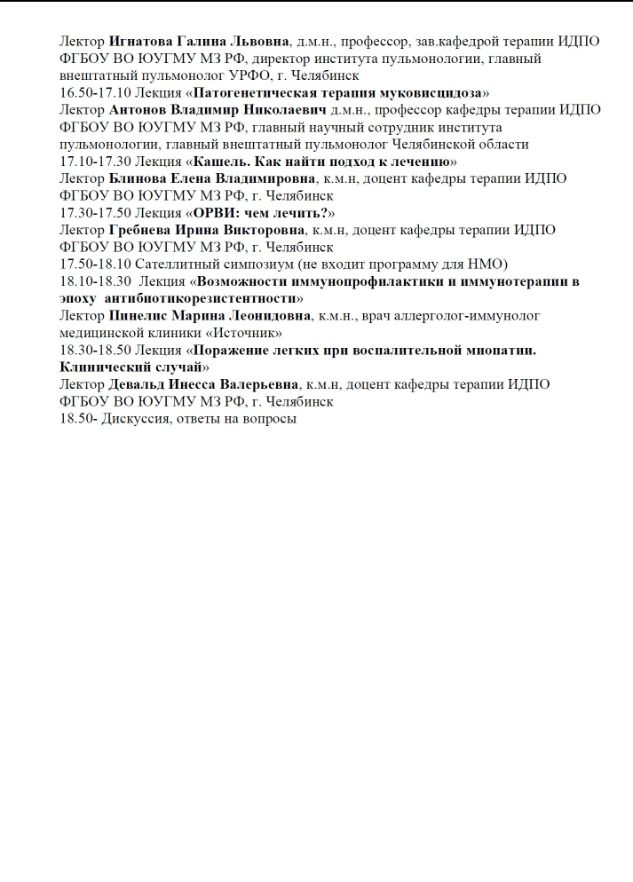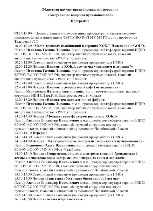 Областная научно-практическая конференция «Актуальные вопросы пульмонологии» Дата проведения: 7 ноября 2023 года Место проведения: г. Челябинск, ул. Труда 153, конгресс отель Малахит Сателлитный симпозиум (не входит программу для НМО)