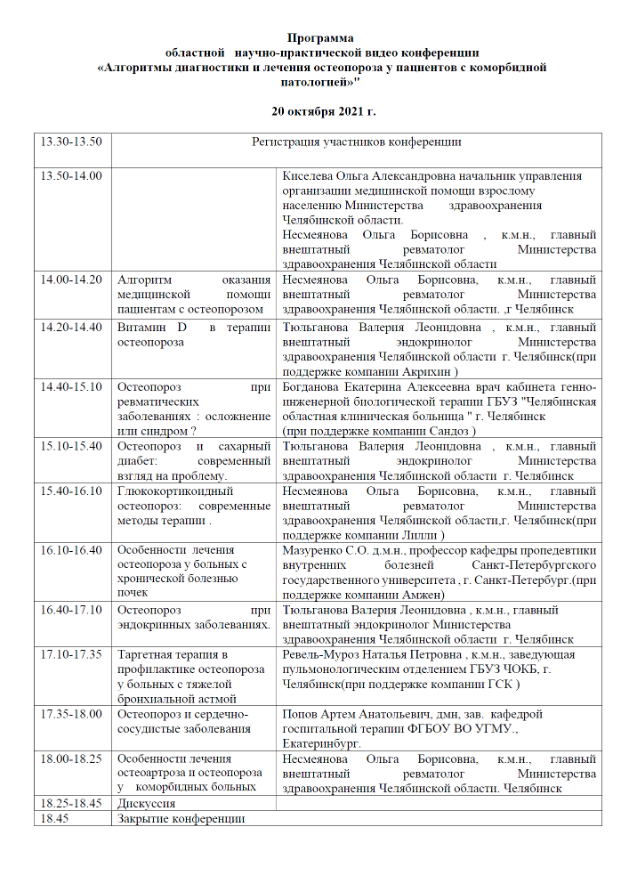 Областная научно-практическая конференция «Алгоритмы диагностики и лечения остеопороза у пациентов с коморбидной патологией» |