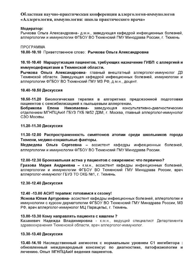 Областная научно-практическая конференция аллергологов-иммунологов «Аллергология, иммунология: школа практического врача» |