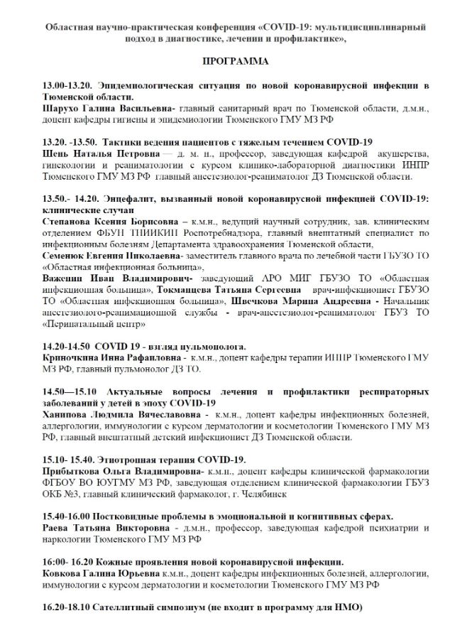 Областная научно-практическая конференция «COVID-19: мультидисциплинарный подход в диагностике, лечении и профилактике» |