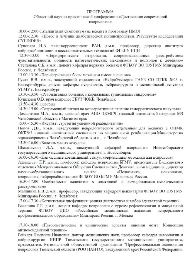 Областная научно-практическая конференция "Достижения современной неврологии" Оформить заказ Дата проведения: 9 ноябяря 2023 г. Место проведения: г. Челябинск, ул. Лесопарковая, 6, Бизнес-Отель «Парк Сити». Сателлитный симпозиум (не входит в программу НМО)