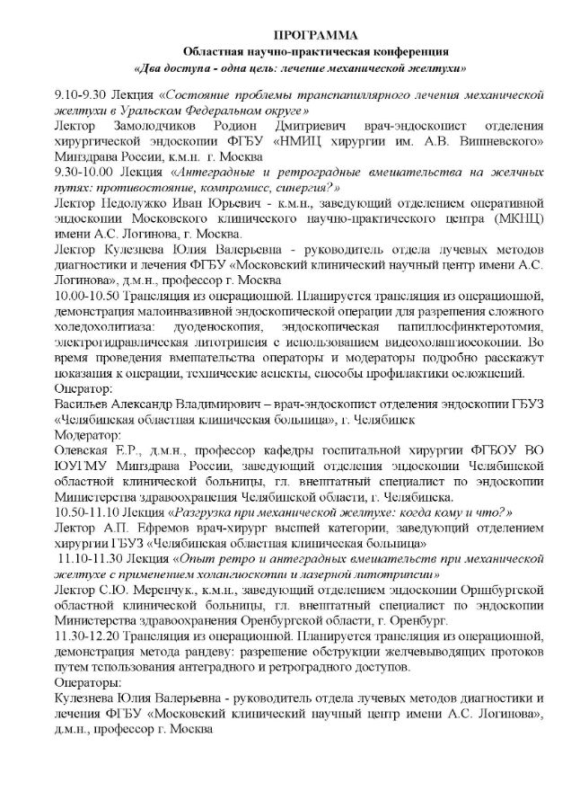 Областная научно-практическая конференция «Два доступа - одна цель: лечение механической желтухи» Дата проведения: 02 октября 2025 г. Место проведения: г. Челябинск, ул. Воровского, 70, ЧОКБ 1 корпус (актовый зал)