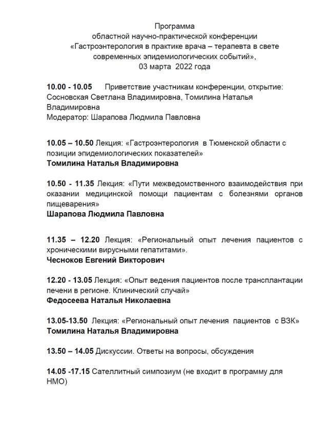 Областная научно-практическая конференция «Гастроэнтерология в практике врача – терапевта в свете современных эпидемиологических событий» |