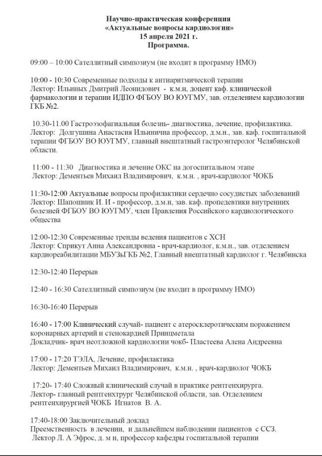 Научно-практическая конференция «Актуальные вопросы кардиологии» |
